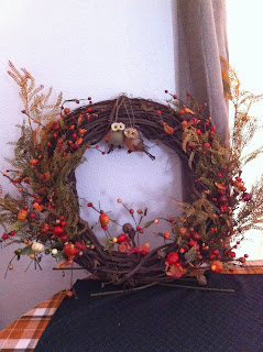 Making a wreath is very easy and inexpensive. I spent $25 at Michaels to make this wreath. I still have left over materials. I bought a wreath there and all the trimmings. All you need is a glue gun, a bit of paint if you use a letter, and a bow maker if you want a fancy bow. The two owls were originally supposed to be ornaments that hang. Have fun!!!